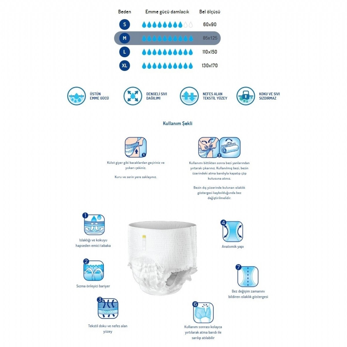 Islaklık ve koyuyu hapseden özel emici tabakası sayesinde kuru ve güvende hissettirir.
