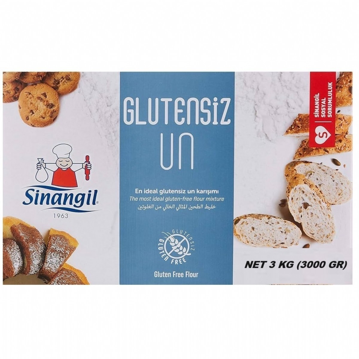 Sinangil Glutensiz Un 3KG (3000GR) Kutu Çölyak Diyetine Uygun